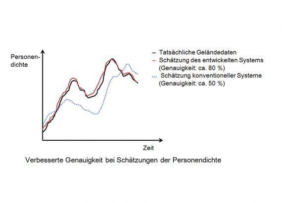 Hintergrund Veranstaltungen mit hohen Personenzuströmen stellen ein erhebliches Sicherheitsrisiko für die Besucher dar und erfordern vom Veranstalter oftmals drastische Steigerungen des eingesetzten Sicherheitspersonals, um ausreichende Sicherheit zu gewährleisten und weite Bereiche um das Veranstaltungsgelände abzudecken. Konventionelle Technologien zur Schätzung der Personendichte wenden historische Daten an, sie erfordern jedoch höchst komplexe Berechnungen und liefern häufig Ergebnisse mit unzureichender Genauigkeit.