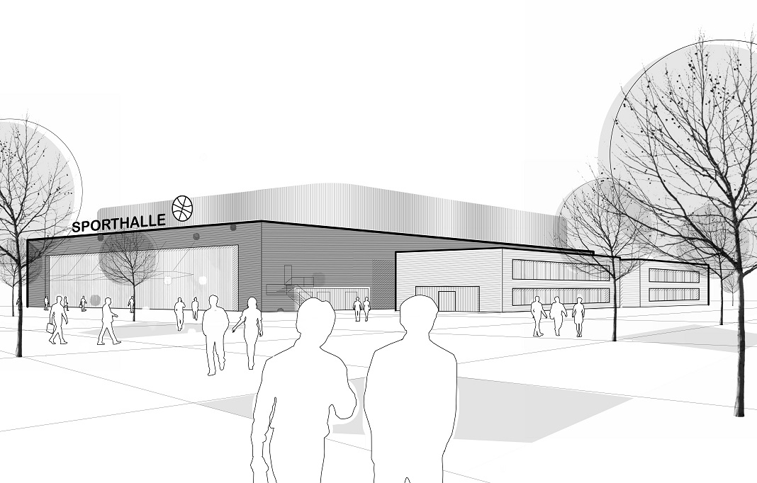 Als Generalübernehmer ist Nüssli (Deutschland) GmbH für die Halle, in der bis zu 4.000 Personen auf den Tribünenanlagen Platz haben, sowie die zwei Funktionsgebäude einschließlich der Außenanlagen zuständig. Die Halle mit einer Abmessung von ca. 91m x 55m ist sowohl für Ballsportarten als auch Sportarten wie Ringen oder rhythmische Sportgymnastik vorgesehen. Zudem ist eine kulturelle Nutzung der Halle denkbar. Die beiden doppelstöckigen Funktionsgebäude mit einer Größe von je 33m x 16m bieten Raum und Infrastruktur für Profiumkleiden, Umkleiden, Pressekonferenzraum, Catering-Bereich, Verwaltung, Warmup-Halle, etc.