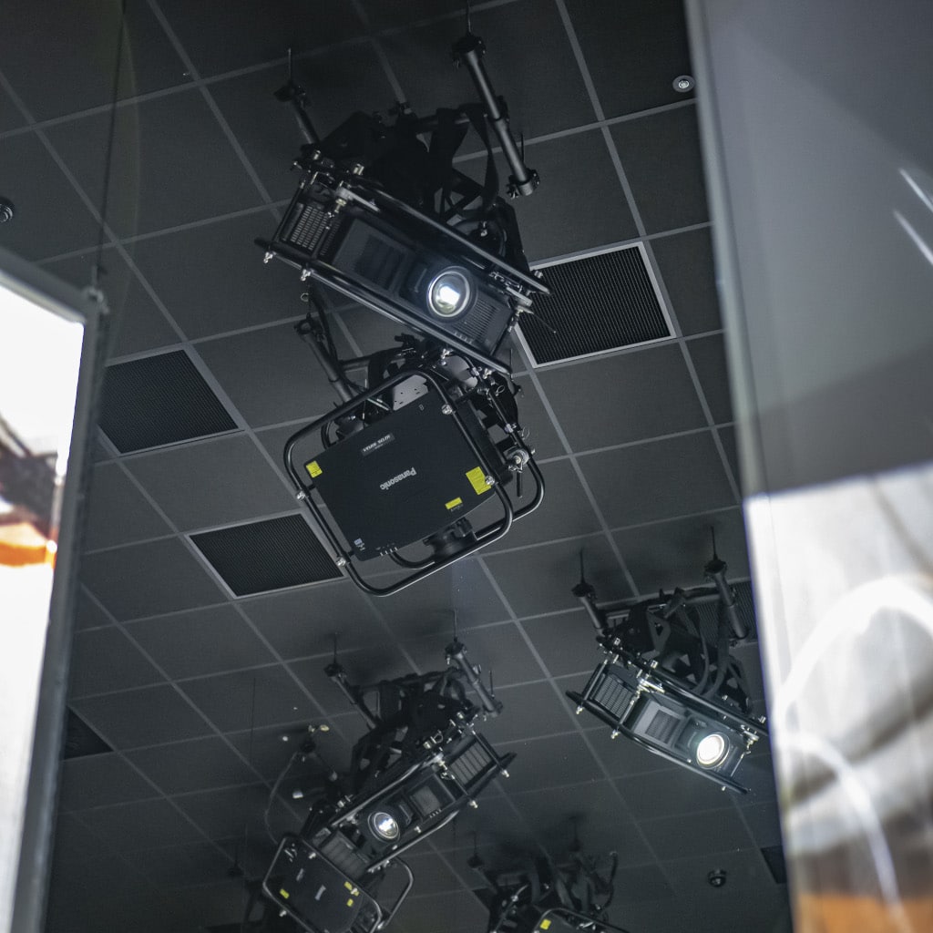 Um die immersiven Effekte zu erzeugen, kommen bei 80% der Projektoren Ultra Short Throw (UST)-Objektive von Panasonic zum Einsatz. Durch diese Linsen können die Projektoren in der Decke versteckt werden. Sie projizieren auch auf Winkel, ohne Schatten zu werfen.