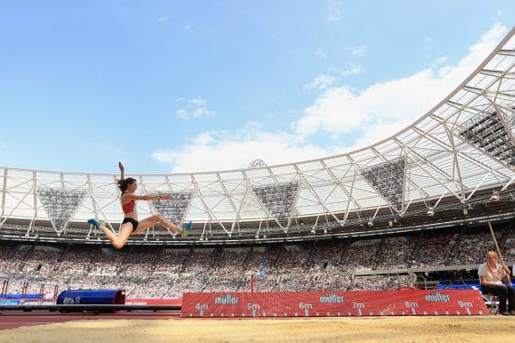 Die Rumänin Alina Rotaru beim Frauen-Weitsprung während der Müller Anniversary Games 2016 in London.