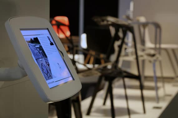 24 Multimedia-Stationen informieren in der Galerie am Party Rent Stand zu den ausgestellten Produkten und Services.