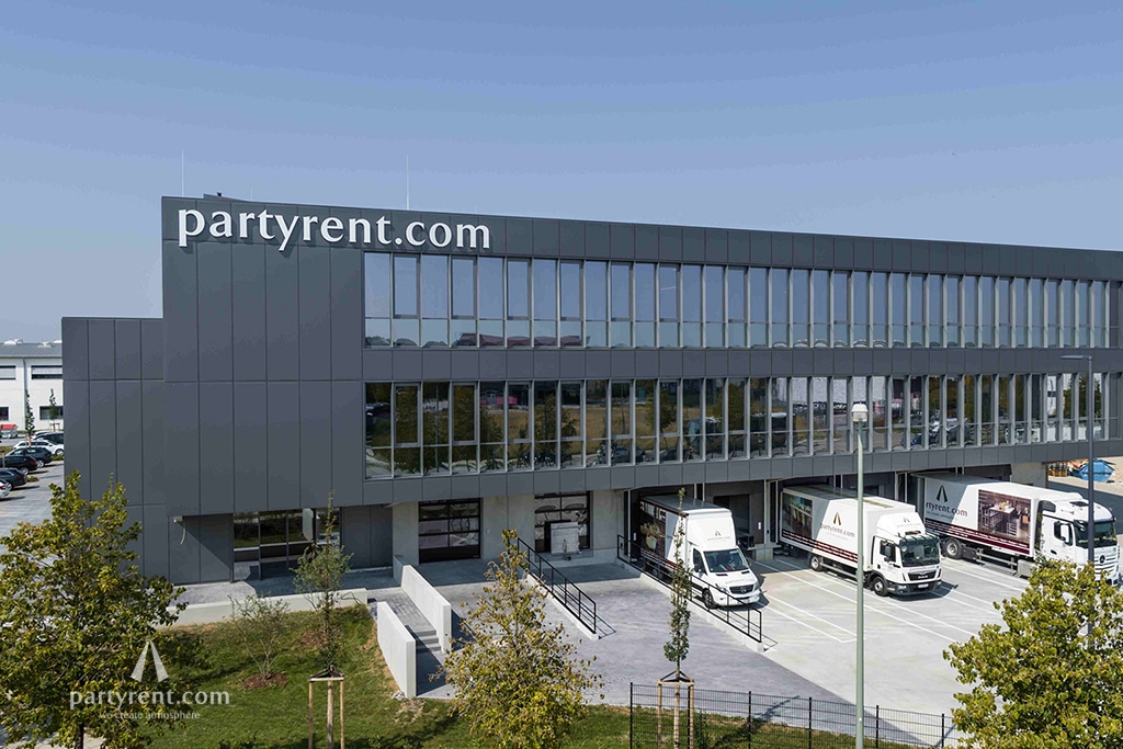 Bei allen Logistikfragen konnten die Erfahrungen der gesamten Party Rent Group berücksichtigt werden, um die Abläufe in Logistik und Administration noch besser zu machen. Das 3.800 m² große Lager mit einem 13,50 m hohen Hochregallager wartet mit modernster Lager- und Spültechnik auf. Die passenden Stapler und Flurförderfahrzeuge bieten neueste Intralogistik. Zudem stehen eine neue Werkstatt und eine Schreinerei für Pflege und Reparaturen der Mietartikel zur Verfügung.