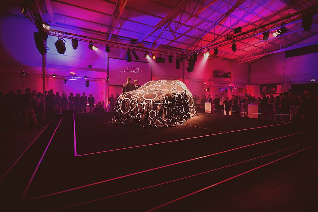 Die Faszination für Porsche und die Präsentation des neuen Cayenne III standen bei der Veranstaltung im Mittelpunkt. Entsprechend platzierte Projektleiter Martin Kaiser von Pink Event Service den SUV auf einer großen Bühne mitten im Raum, die rundum begannen werden konnte. „Das ermöglichte ein besonderes 360° Live-Erlebnis und das Auto steht wirklich im Mittelpunkt“, so Martin Kaiser. Die Enthüllung selbst wurde durch Porsche-Videosequenzen rund um das Motto und den Sportwagen eingeleitet, die noch nicht so viel verrieten. Eine faszinierende Feuer- und Lichtshow mit den Firedancern rund um den verdeckten Cayenne sorgte zusätzlich für Spannung und gipfelte in der Enthüllung des Sport-SUVs aus Zuffenhausen.