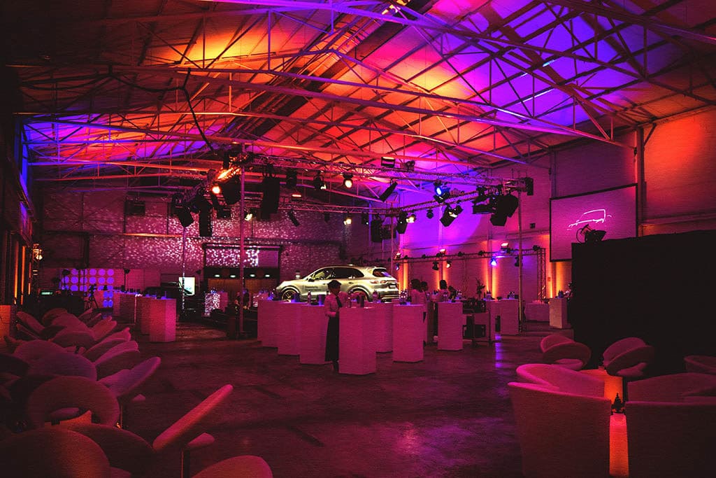 Für die Porsche Cayenne Premiere in Karlsruhe wurde eine alte Lagerhalle in eine Eventlocation verwandelt.