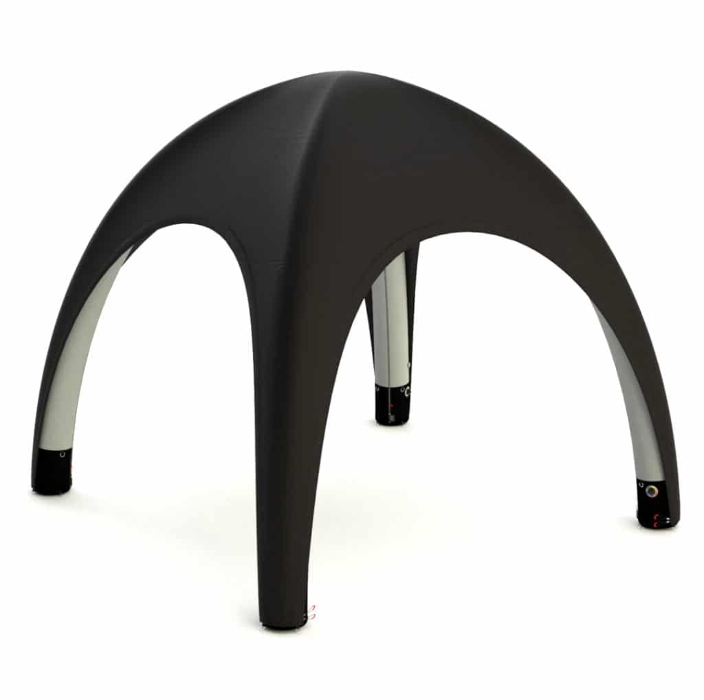 Das AirTent lässt sich extrem schnell auf- und abbauen. Es eignet sich hervorragend für Open-Air- und Corporate-Veranstaltungen. Die Zelte sind in drei verschiedenen Größen erhältlich – von 9 m² bis zu 25 m² Grundfläche. Die Planen lassen sich bedrucken und verfügen über eine B1-Zertifizierung. Standardmäßig sind die Zelte in den Ausführungen schwarz und weiß ab Lager lieferbar.