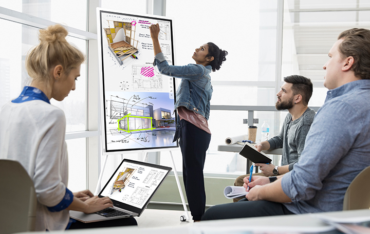 Bilder, Word-Dateien, Excel-Tabellen oder PDFs – Inhalte von PCs, Laptops und Smartphones können über WLAN oder Bluetooth auf das Display des Flip übertragen werden. Andersherum ist es ebenso möglich, über WiFi die Anzeige des Flipcharts auf einem größeren Display zu spiegeln – für eine interaktive Zusammenarbeit mit einer Vielzahl an Meeting-Teilnehmern. Eine Erweiterung der Verbindungsvarianten ist über eine optionale Anschlussbox unter anderem mit einer NFC- sowie einer HDMI-Out-Schnittstelle möglich. Egal welche Verknüpfung verwendet wird, Änderungen auf dem einen Gerät werden in Echtzeit auf dem anderen übernommen. Für das Abrufen von Internetseiten kann der integrierte Webbrowser verwendet werden. Zudem besitzt der Flip 2 Zugänge zu Windows Office 365 und Samsung Workspace, um Dokumente aus der Cloud zu laden.