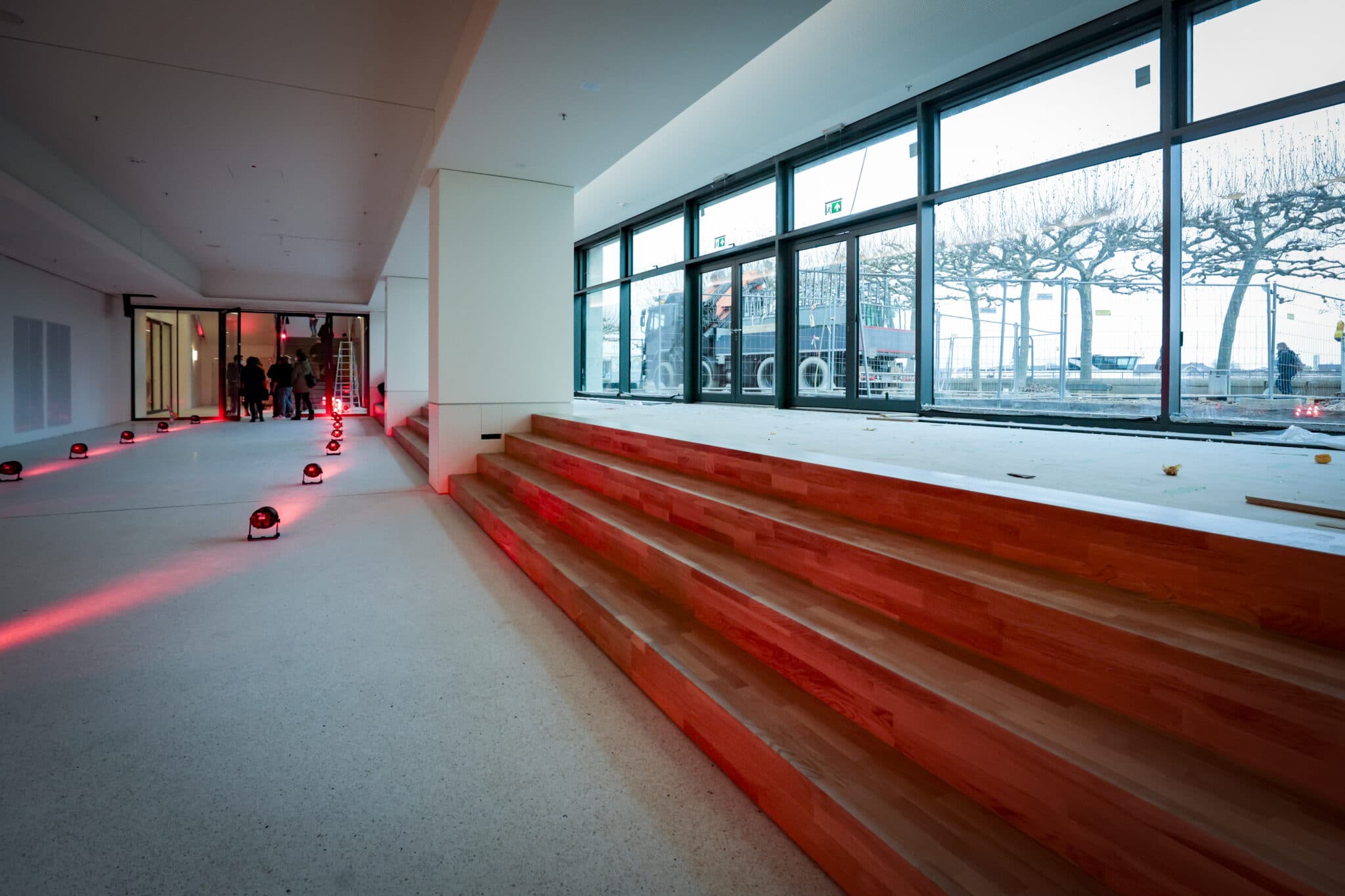 Rückblickend erklären die Bauherren und Planer, dass das gesamte Gebäude auf den Rohbau entkernt und neu aufgesetzt wurde. Räume wurden zusammengelegt, andere verlagert, Oberflächen umgestaltet, verschiedene Ebenden ausgeglichen, siebzehn riesige fast zwanzig Meter lange Bohrpfähle in das Erdreich zum Teil per Hand eingearbeitet, um die Statik des Gebäudes zu ertüchtigen. Mannshohe Lüftungskanäle mussten in allen Ebenen nicht sichtbar untergebracht werden, um die Veranstaltungsräume samt Foyer mit frischer Luft – nachhaltig und möglichst klimafreundlich – zu versorgen.