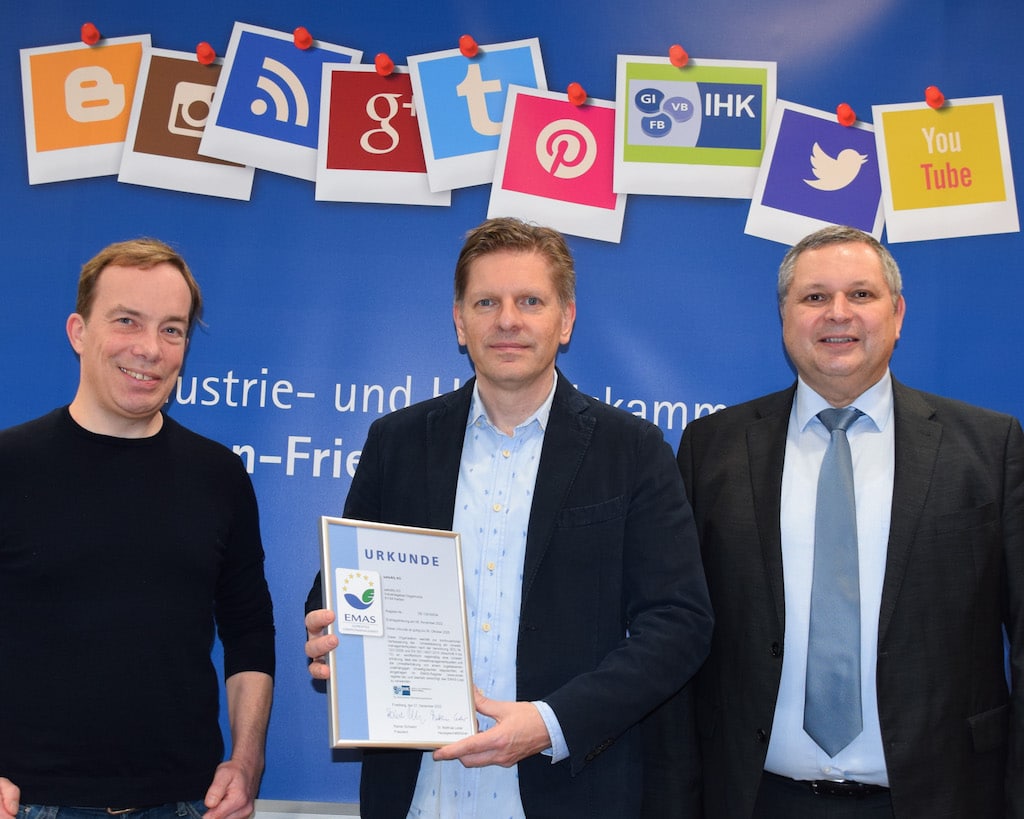 „Wir freuen uns, dass wir die EMAS-Urkunde in den Händen halten. Unser besonderer Dank geht an Umweltberater Marcus Stadler und Gutachter Lennart Schleicher, die die Auditierung begleitet und uns mit ihrer Expertise zum Erfolg verholfen haben“, ergänzt Tobias Mack.