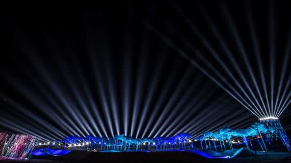 Ausschlaggebend für die Wahl des technischen Dienstleisters war auch der hohe Anspruch der Aufgabe und Konzeption, sowie die Qualität des eingesetzten Materials und der besondere Umgang damit. Es galt eben keine Messehalle, sondern eine vier Hektar große Außenanlage mit mehr als 800 unterschiedlichsten Scheinwerfern und Lichtquellen zu bestücken, darunter zahlreiche Astera AX3 und AX10, die über ein LumenRadio Sendersystem kabellos angesteuert wurden.