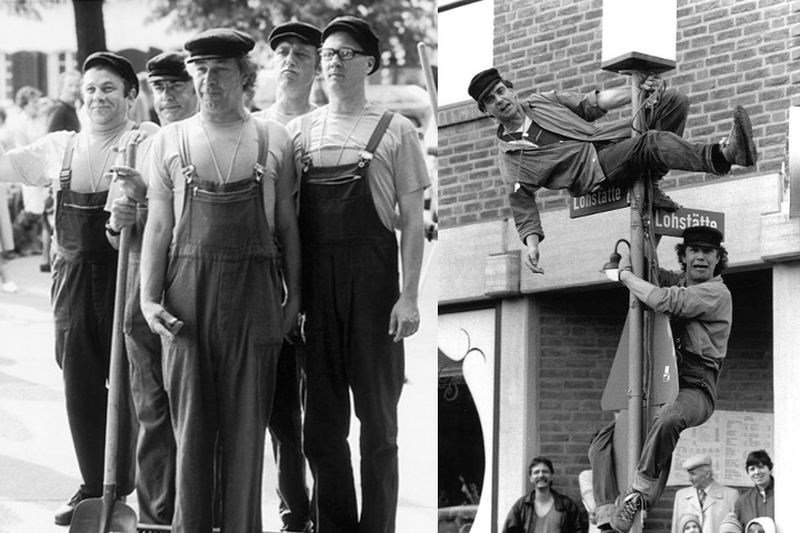 Straßentheater mit Ali Wichmann und Deed Knerr und Straßenkehrer(Bild: Scharlatan Theater)