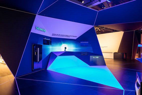 Innovationen und Emotionen in einen Raum zu gießen, Hi-Tech und Grundbedürfnis zu kombinieren und in das Heute zu transportieren – das ist Siemens auf der IFA in Berlin. Im Kern will sich der Mensch ernähren, sich kleiden und angenehm wohnen; das hat sich in den letzten paar tausend Jahren nicht geändert. Die Technik allerdings hat Quantensprünge gemacht. Daraus eine sowohl hochtechnisierte als auch angenehme Lebenswelt zu inszenieren, war Aufgabe des Schmidhuber Teams als Generalübernehmer für Siemens auf der IFA 2016 – und das bereits im fünften Jahr.