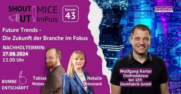 Aufgrund einer Bombenentschärfung im Umkreis des Studios wurde die 43. Ausgabe des populären Streamingformats Shout Out – MICE ImPuls, die ursprünglich für den 13. August 2024 geplant war, auf den 27. August 2024 verlegt.