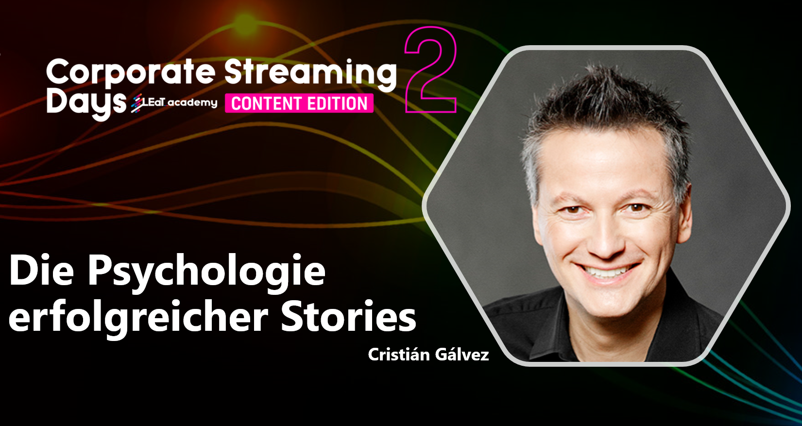 Die Psychologie erfolgreicher Stories gilt auch für Digital-Events. Moderator & Coach Cristián Gálvez bringt den Teilnehmenden der Corporate Streaming Days 2: Content Edition die sechs wichtigsten Schritte jeder Geschichte bei. Das digitale zweitägige Education Event findet am 14.+15. April 2021 statt.