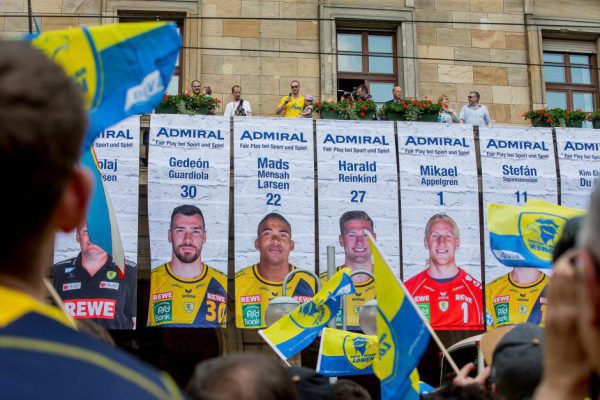 Beim Meisterempfang der Stadt Mannheim am darauffolgenden Nachmittag kleidete tailormade die Außenfassade des Mannheimer Rathauses respektive den Meisterbalkon brandingtechnisch voll und ganz in Admiral- und Rhein-Neckar Löwen-Look. Admiral hat mit seinem Engagement bei Public Viewing und Meisterfeiern einen überaus erfolgreichen Frühstart hingelegt, schließlich ist man erst zum Start der kommenden Saison offiziell im Amt.