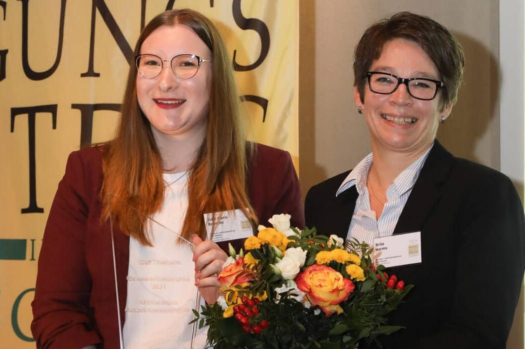 Über den Preis für das Seminar- und Eventzentrum Gut Thansen freuten sich Azubi-Sprecherin Julie-Marie Bonecke (l.) und Brita Harms.