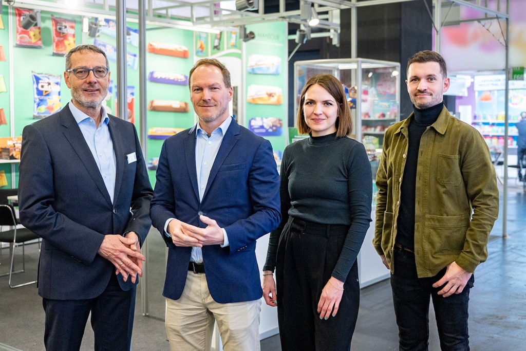 Dr. Stefan Eckert, Senior Vice President Services Koelnmesse, Sebastian Nitsch, Head of Product Management Services Koelnmesse, Johanna Soboll, Sustainability Manager Uniplan, Fabian Gleisner, Group Head & Key Account Director Uniplan (v. l. n. r.) (Bild: Koelnmesse GmbH / Oliver Wachenfeld.)