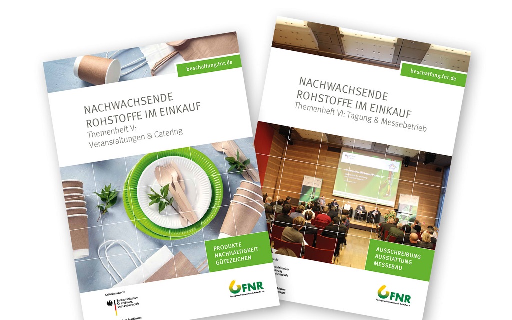Die Fachagentur Nachwachsende Rohstoffe e. V. (FNR) hat in ihrer Reihe „Nachwachsende Rohstoffe im Einkauf“ zwei neue Themenhefte zu den Bereichen „Veranstaltung & Catering“ sowie „Tagung & Messebetrieb“ herausgegeben. Beide Broschüren sollen einen Einstieg in die rechtssichere, nachhaltige Beschaffung mit pflanzlich-basierten Produkten bieten und sind in der Mediathek der FNR verfügbar.
