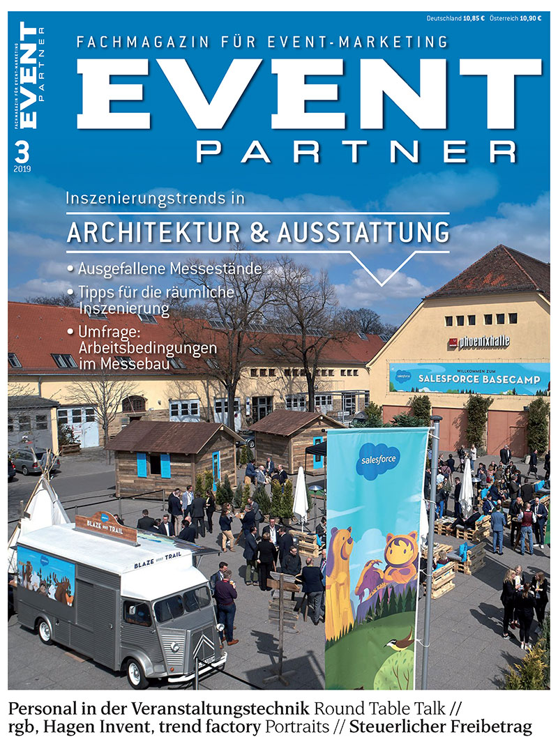 Inszenierungstrends in ARCHITEKTUR & AUSSTATTUNG +++ Round Table Talk: PERSONAL IN DER VERANSTALTUNGSTECHNIK +++ PORTRAITS: rgb, Hagen Invent, trend factory +++ Steuerlicher Freibetrag9,20 €