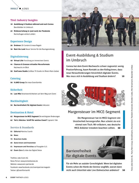 Drohnen: 3D-Content & neue Gesetze | Ausstattung: Rent the Look | Barrierefreiheit für Digital-Events | MICE: News zur Margenbesteuerung9,20 €