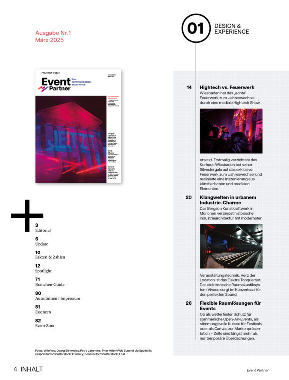 Hightech-Show statt Feuerwerk; Klangwelten im Bergson Kunstkraftwerk; flexible Raumlösungen für Events